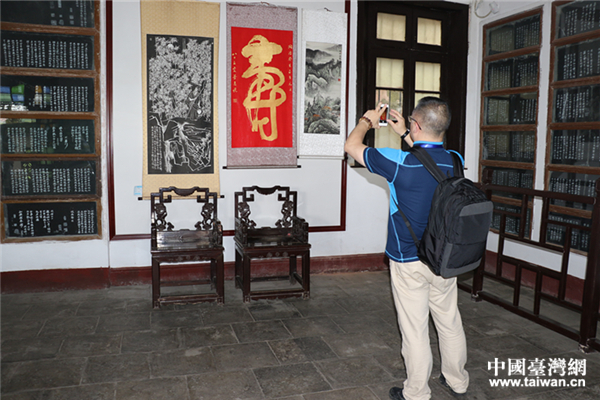 臺灣《聯合報》總經理楊大德拍攝清代清代書法家葉志詵臨摹蘇東坡書法,所寫的一筆“壽”字。(中國臺灣網 郜利敏 攝)