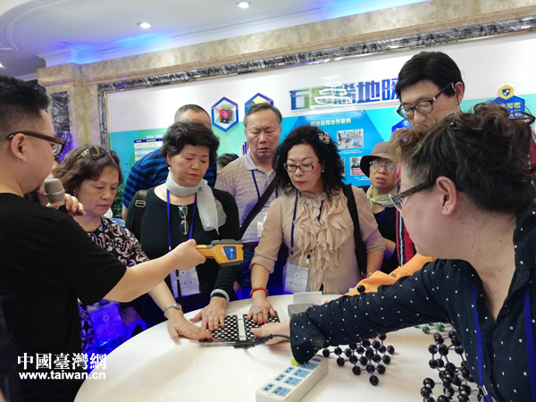 參訪團在夾江盛世東方陶瓷公司感受石墨烯地暖瓷磚高科技。(圖片來源:四川省臺聯)