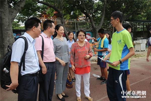在臺東縣知本中學,該校同學們用當地少數民族迎賓舞歡迎考察團的到來,并邀請考察團一同載歌載舞,表達兩岸一家親的美好情誼。隨后,考察團參觀校園,進行座談。知本中學對學生的家庭狀況、民族、籍貫進行分類統計,在教學過程中因材施教,關注每個學生的發展,這樣的管理模式為考察團提供了啟發與借鑒。