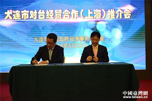 推介會上,大連市臺協與上海市臺協簽署《對口合作意向書》。(圖片來源:大連市臺辦)