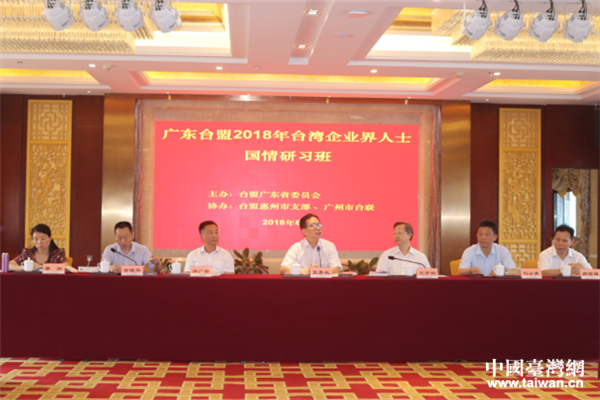中國臺灣網6月27日廣州訊 6月22日至24日,臺盟廣東省委員會、廣州市臺聯、臺盟惠州支部聯合舉辦了“2018年臺灣企業界人士研習班”活動。廣東省政協副主席、臺盟廣東省委員會主委張嘉極,臺盟廣東省委員會專職副主委鄭廣臺,廣東省臺辦交流交往處處長劉小青等領導以及在粵臺商代表35人等全程參加了研習班活動。
