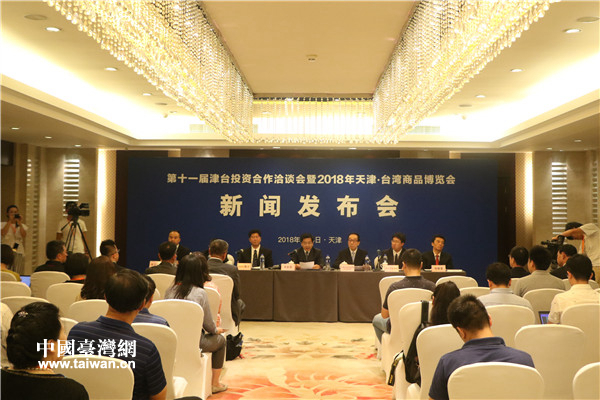 第十一屆津臺(tái)投資合作洽談會(huì)暨2018年天津·臺(tái)灣商品博覽會(huì)新聞發(fā)布會(huì)現(xiàn)場(chǎng)。(中國(guó)臺(tái)灣網(wǎng) 趙苗青 攝)