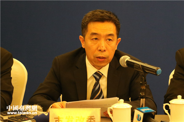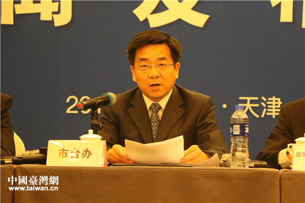 天津市發(fā)改委外資處長(zhǎng)李芃介紹《關(guān)于進(jìn)一步促進(jìn)津臺(tái)經(jīng)濟(jì)社會(huì)文化交流合作的若干措施》內(nèi)容。(中國(guó)臺(tái)灣網(wǎng) 趙苗青 攝)