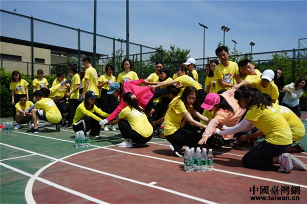中國臺灣網7月5日長沙訊 7月的驕陽跳躍著青春般熱情的舞步。7月4日上午,來自臺北大學、臺灣大學、世新大學等22所臺灣高校的50名大學生和10位來自湖南廣電的老師進行一次別開生面的戶外拓展訓練,讓實習生彼此互相了解,建立團結意識和集體觀念,展示青年學生們的朝氣和活力。