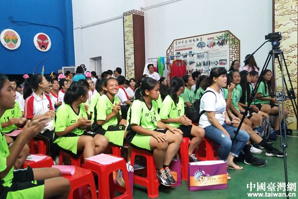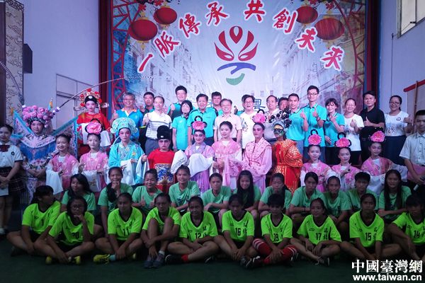 中國臺灣網7月9日梧州訊 7月6日,臺灣花蓮縣足球協會理事長陳益雄率花蓮縣光復中學、瑞北小學師生一行41人到廣西梧州市第十一中學,參加“一脈相承 共創未來”體驗“粵劇”活動。