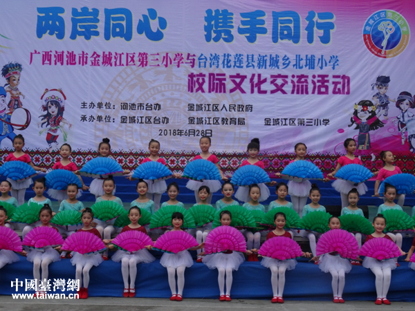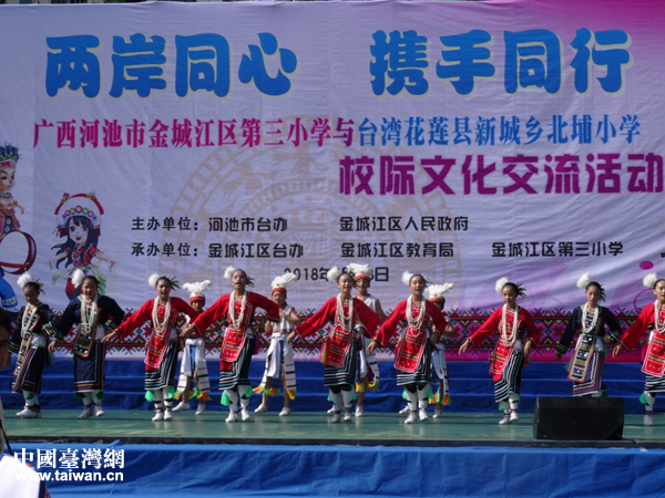 臺灣花蓮縣新城鄉北埔小學的舞蹈表演。(圖片來源:廣西河池市金城江區臺辦)