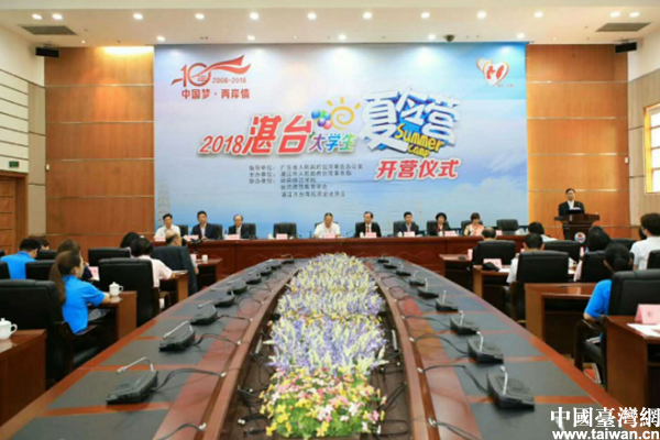 2018湛臺(tái)大學(xué)生夏令營(yíng)開(kāi)營(yíng)儀式現(xiàn)場(chǎng)。(圖片來(lái)源:湛江市臺(tái)辦)
