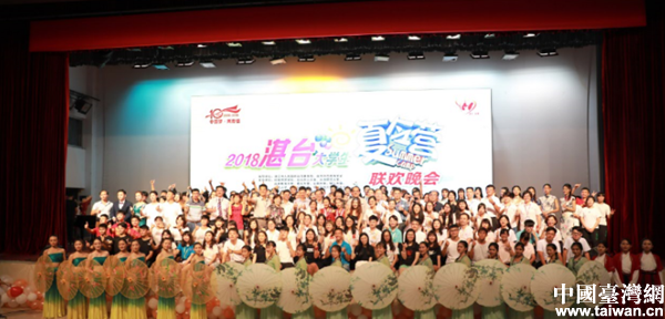 2018湛臺(tái)大學(xué)生夏令營(yíng)聯(lián)歡晚會(huì)合影。(圖片來(lái)源:湛江市臺(tái)辦)