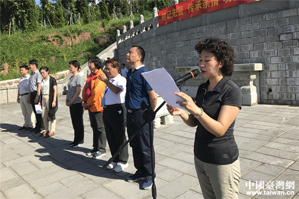 來自寶島臺灣的師生在安徽省合肥市肥西縣劉銘傳墓園舉行紀念活動。(圖片來源:北京臺聯)