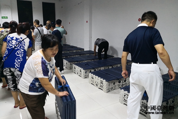 慈濟志工為受災(zāi)群眾安裝簡易床。(圖片來源:德陽市臺辦)