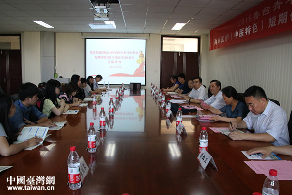 2018兩岸醫(yī)護(hù)(中醫(yī)特色)短期研習(xí)營(yíng)在山東中醫(yī)藥大學(xué)開(kāi)營(yíng)儀式。(圖片來(lái)源:山東省臺(tái)辦)