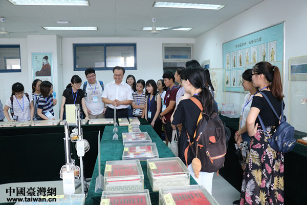7月17日,參加研習(xí)營(yíng)的同學(xué)們先后參觀(guān)了山東中醫(yī)藥大學(xué)圖書(shū)館古籍特藏部、山東省中醫(yī)藥博物館,到學(xué)校實(shí)驗(yàn)中心觀(guān)摩了藥用植物標(biāo)本、針灸器具展示等。通過(guò)參觀(guān),來(lái)自臺(tái)灣的同學(xué)們紛紛表示開(kāi)闊了視野,增強(qiáng)了對(duì)中醫(yī)藥傳統(tǒng)文化的感性認(rèn)識(shí),深刻感受到了中醫(yī)文化的博大精深。接下來(lái),學(xué)生們還將通過(guò)聆聽(tīng)《中醫(yī)文化和人文關(guān)懷》、《中醫(yī)護(hù)理實(shí)訓(xùn)(耳穴壓豆)》、《老年人居喪風(fēng)險(xiǎn)研究》等方面的講座,并安排了山東中醫(yī)藥大學(xué)11名同學(xué)與來(lái)自臺(tái)灣的11名同學(xué)“一對(duì)一”結(jié)對(duì)學(xué)習(xí)交流進(jìn)一步加深對(duì)中醫(yī)文化和中醫(yī)特色護(hù)理的感受和認(rèn)識(shí),和兩岸醫(yī)護(hù)教學(xué)的特點(diǎn)。