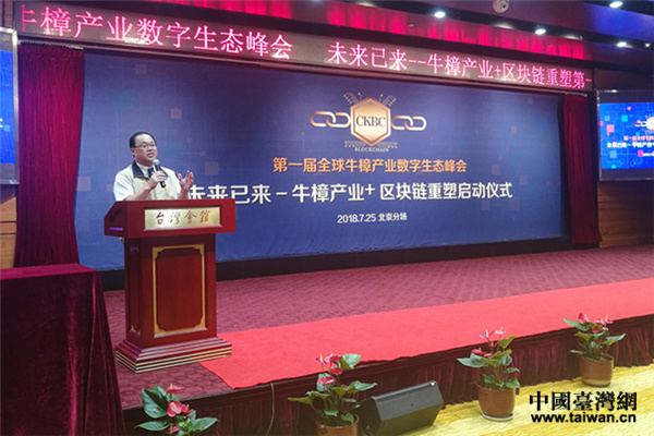 第一屆全球牛樟產(chǎn)業(yè)數(shù)字生態(tài)峰會在京召開。峰會上,牛樟產(chǎn)業(yè)“區(qū)塊鏈商業(yè)運營模式”正式啟動。(中國臺灣網(wǎng) 郜利敏 攝)