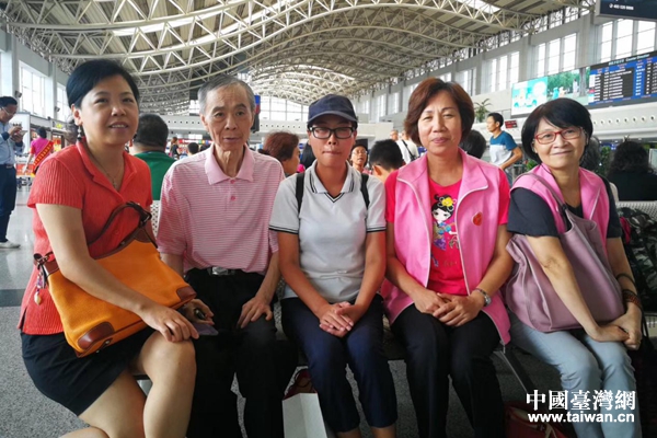 王英和成都臺協婦聯會工作人員與劉震國(左二)在成都雙流機場合影。(圖片來源:綿陽市臺辦)