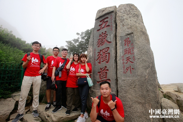 參加暑學(xué)營(yíng)的兩岸青年登上泰山。(圖片來(lái)源:山東省臺(tái)辦)