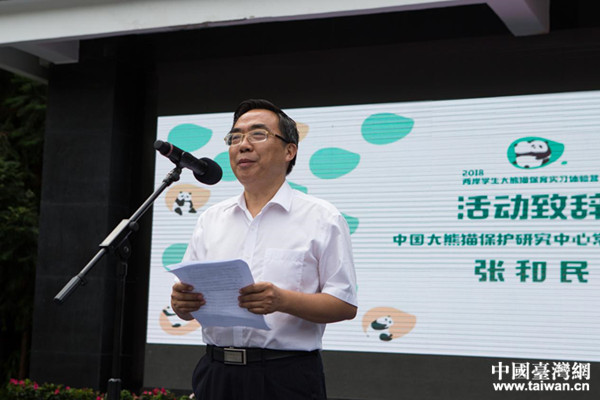 中國大熊貓保護研究中心主任張和民致辭。(圖片來源:四川省臺辦)