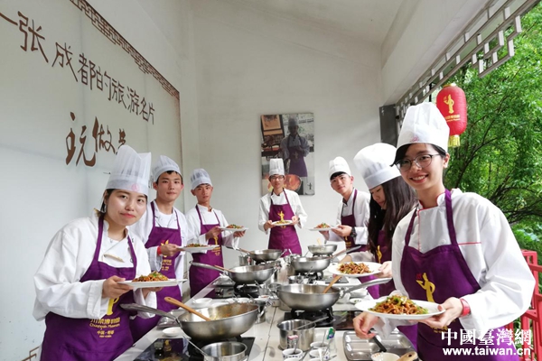中國臺灣網(wǎng)8月7日成都訊 “食在中國,味在四川”,麻辣火鍋、回鍋肉、水煮魚、麻婆豆腐、夫妻肺片……說起“一菜一格,百菜百味”的川菜,全天下的食客都激動不已。7月19日,參加全國臺聯(lián)2018年臺胞青年千人夏令營四川·成都分營的兩岸青年學(xué)生走進成都川菜博物館,學(xué)習(xí)川菜知識,親手制作經(jīng)典菜品,開啟了一場穿越時空的美妙川菜文化之旅。大家盛贊:“好棒的活動,充實又有成就感!”