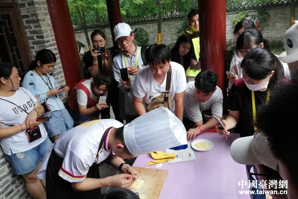觀看川菜大師蒙眼刀工展示。(圖片來源:四川省臺聯(lián))