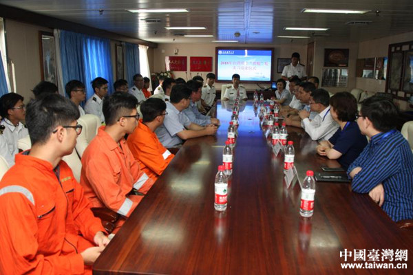 中國臺灣網(wǎng)8月9日大連訊 7月31日,2018年臺灣師生隨船實習項目結(jié)業(yè)儀式在遼寧省大連海事大學“育鯤”輪上舉行,國臺辦交流局局長黃文濤、大連市臺辦主任趙彤、國臺辦干部胡炎炎等出席儀式。