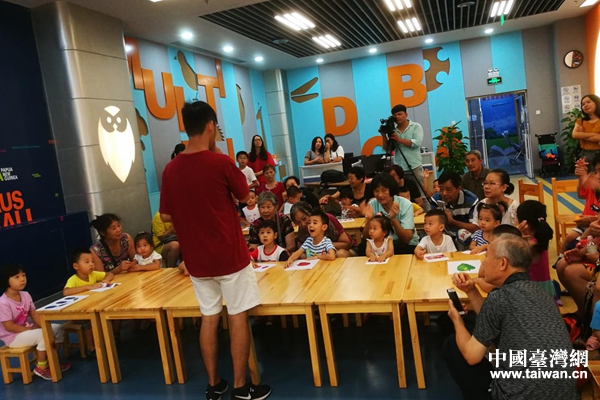 臺灣實習生潘家洋給小朋友們講故事。(中國臺灣網(wǎng) 王莉婷 攝)