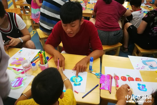 臺灣實習生潘家洋與小朋友們互動。(中國臺灣網(wǎng) 王莉婷 攝)