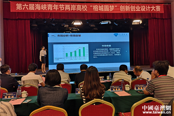 《“蛋”說無妨》項(xiàng)目團(tuán)隊(duì)在第六屆海峽青年節(jié)兩岸高!伴懦菆A夢(mèng)”創(chuàng)新創(chuàng)業(yè)設(shè)計(jì)大賽上進(jìn)行路演。(中國臺(tái)灣網(wǎng) 郜利敏 攝)