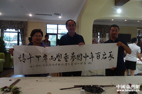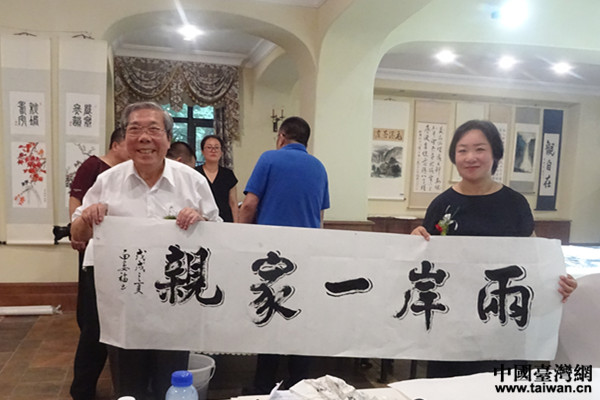 臺灣書法家題寫兩岸一家親。(圖片來源:遼寧臺辦)
