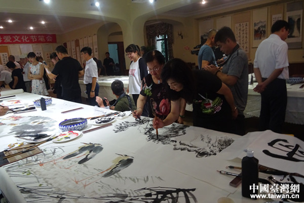 以國際女書畫家協會理事長楊靜江為團長的臺灣書畫家團和營口書畫家共同創作交流。在筆會現場,營臺兩地書畫家凝神靜氣,揮毫潑墨,勾勒水光山色、春華秋實。大家以書會友,以畫傳情,創作書法作品120多幅、畫作80多幅。這些作品弘揚了母愛文化和中華民族傳統書畫藝術,表達了海峽兩岸人民的深厚情誼。 (中國臺灣網遼寧臺辦通訊員 張愛民 趙旭平)