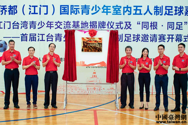 中國(guó)臺(tái)灣網(wǎng)8月22日江門訊 為貫徹落實(shí)黨的十九大精神以及習(xí)近平總書記在今年“兩會(huì)”期間對(duì)江門的囑托,同時(shí)為圓滿完成國(guó)務(wù)院臺(tái)辦今年立項(xiàng)批復(fù)江門市的“同根系列·同足”對(duì)臺(tái)重點(diǎn)交流項(xiàng)目任務(wù),積極發(fā)揮江門市對(duì)臺(tái)資源豐富的優(yōu)勢(shì),加深江臺(tái)兩地青少年交流,促進(jìn)江臺(tái)兩地文化體育融合。近日,由江門市臺(tái)灣事務(wù)局、江門團(tuán)市委、廣東珠超俱樂部主辦的2018中國(guó)僑都(江門)國(guó)際青少年室內(nèi)五人制足球嘉年華開幕式暨“江門臺(tái)灣青少年交流基地”揭牌儀式及“同根·同足”活動(dòng)——首屆江臺(tái)青少年室內(nèi)五人制足球邀請(qǐng)賽開幕式在廣東江門新會(huì)體育中心成功舉辦。