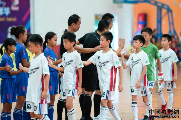 首屆江臺(tái)青少年室內(nèi)五人制足球邀請(qǐng)賽開幕式。(圖片來源:江門臺(tái)辦)