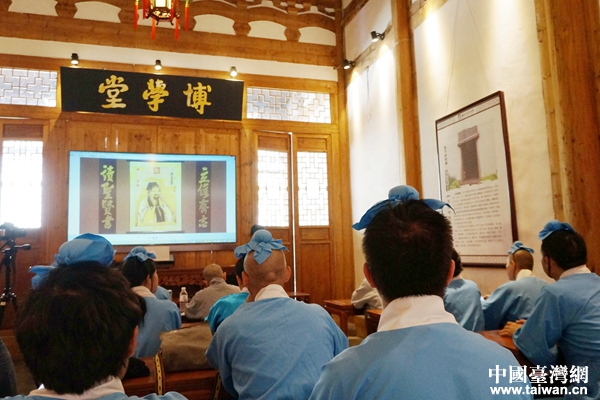 臺(tái)灣華梵大學(xué)、銘傳大學(xué)學(xué)生和在京青年臺(tái)胞大學(xué)生們以“士子”的身份,參加了此次考試,親身感受當(dāng)年學(xué)子們勤奮讀書(shū),報(bào)效國(guó)家的心路歷程,進(jìn)一步了解科舉制度作為中國(guó)封建社會(huì)的制度支柱和文化主脈對(duì)臺(tái)灣產(chǎn)生的影響,更是對(duì)儒學(xué)文化有了深層次的認(rèn)知。活動(dòng)現(xiàn)場(chǎng),研習(xí)營(yíng)一行首先與福州市小朋友共同練習(xí)書(shū)寫(xiě)毛筆字,體會(huì)中國(guó)書(shū)法之美感,接下來(lái),學(xué)子們穿上統(tǒng)一的漢服,體驗(yàn)當(dāng)年正誼書(shū)院的“入學(xué)儀式”,并學(xué)習(xí)中華儒學(xué)禮儀,向朱子像行深衣禮,祭拜先賢。隨后,正誼書(shū)院楊瑞英老師為兩岸學(xué)子作了“兩岸書(shū)院文化源脈專(zhuān)題講座”。