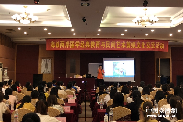 中國臺灣網(wǎng)8月27日贛州訊 8月18日至19日,海峽兩岸國學(xué)經(jīng)典教育民間藝術(shù)剪紙交流活動在贛州舉行。教育部中國人生科學(xué)學(xué)會副會長、中國人生科學(xué)學(xué)會海峽少兒教育專業(yè)委員會理事長陳月仙,中國人生科學(xué)學(xué)會海峽少兒教育專業(yè)委員會常務(wù)副理事長姚兵岳,中國高級美術(shù)工藝師、“北京剪紙”非物質(zhì)文化遺產(chǎn)代表性傳承人、中國人生科學(xué)學(xué)會海峽少兒教育專業(yè)委員會特聘專家徐陽,中國人生科學(xué)學(xué)會海峽少兒教育專業(yè)委員會辦公室主任崔秀杰,臺灣民間國學(xué)推廣與剪紙傳人蕭素娥等嘉賓應(yīng)邀參加了本次活動,并現(xiàn)場傳授剪紙技藝。來自贛州、崇義的幼兒教師和小學(xué)教師共計150余人參加了培訓(xùn)。