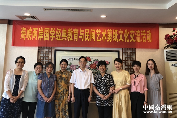 海峽兩岸國學(xué)經(jīng)典教育民間藝術(shù)剪紙交流活動在贛州舉行。(圖片來源:江西省臺辦)