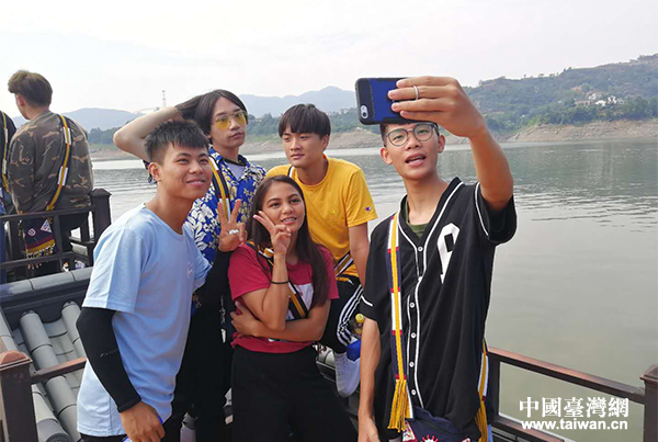 兩岸青少年在瀛湖合影留念。(中國臺灣網(wǎng) 張露露 攝)
