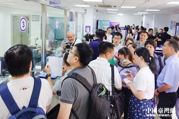 9月1日是申領辦證的第一天,上海市各受理點迎來了不少港澳臺居民。(圖片來源:上海市臺辦)