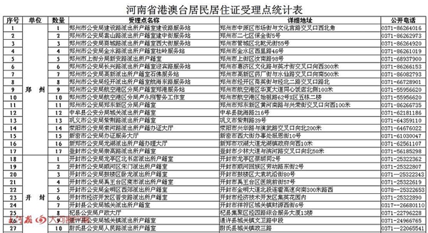 附件:《河南省港澳臺居民居住證受理點》
