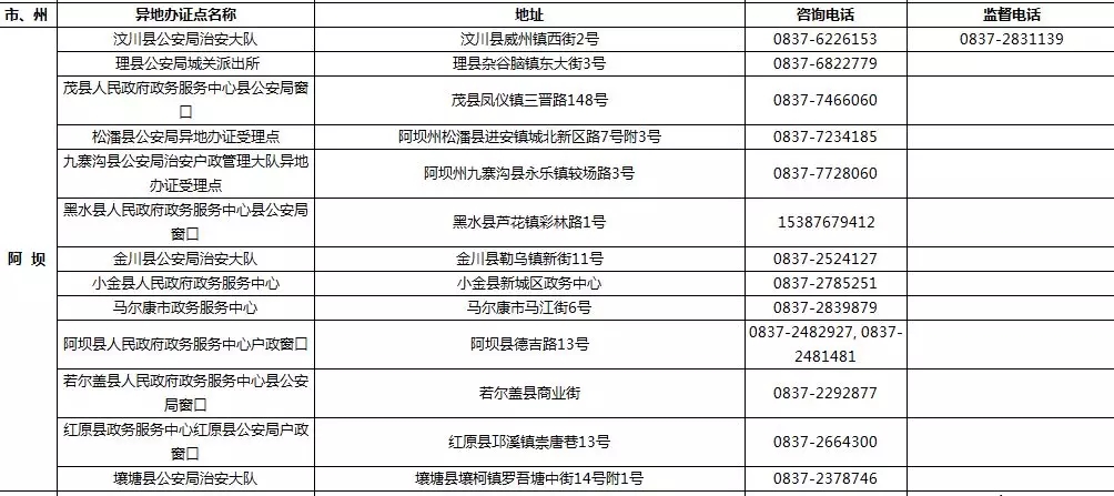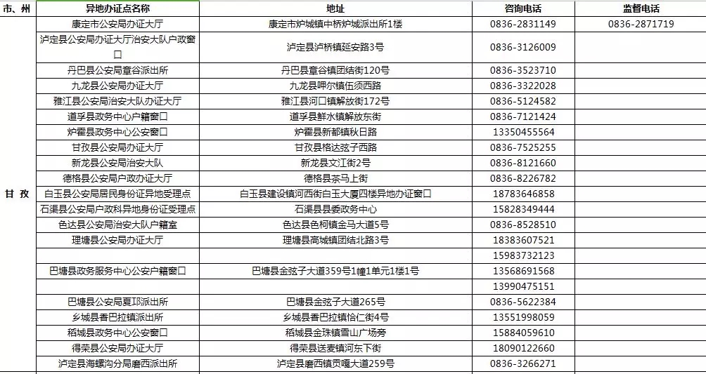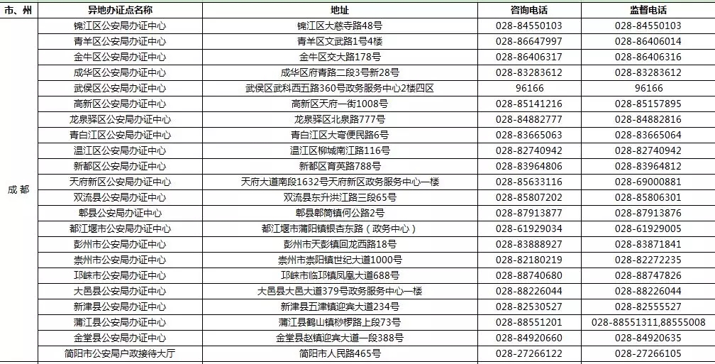 四川省港澳臺居民居住證受理點(diǎn)名稱、地址,咨詢及監(jiān)督電話: