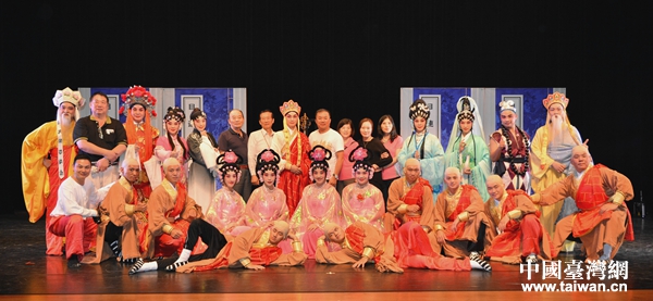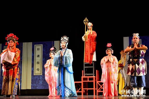 中國臺灣網9月7日南寧訊 近期,廣西南寧市民族文化藝術研究院(以下稱南寧市藝研院)演職人員一行15人首次攜南派傳統粵劇《目連救母》赴臺,與臺灣戲劇學院的12名同學合作,在南投縣演藝廳、新北市力行福德宮戶外露天舞臺演出,共同演繹中華傳統“百善孝為先”的感人故事,受到當地民眾的熱捧。