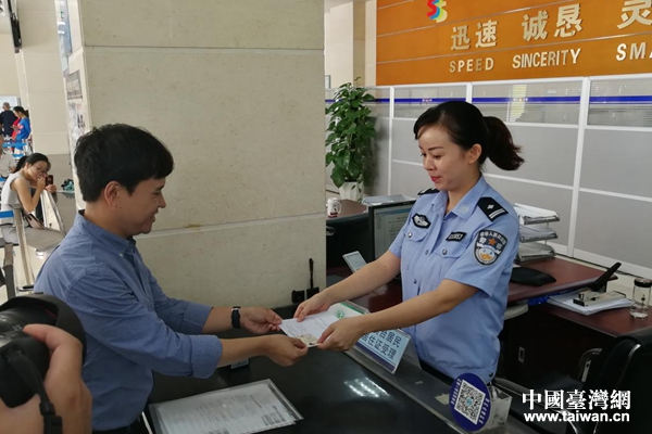 9月1日上午,在瀘州市公安江陽分局龍透關派出所內的業務辦理窗口,臺灣同胞趙均彧從民警手中接過了一張“港澳臺居民居住證領取憑證”,在20個工作日后,他將成功領取港澳臺居民居住證。“臺灣居民來往大陸通行證和大陸的居住證在證件號字碼上是不同的,所以,我們在選擇坐高鐵、飛機的時候,時常會遇到無法到站自助取票的困難,另外,辦理港澳臺居民居住證后,對我將來購買基金、保險、甚至購房都會有很大的幫助。”趙均彧說,他很早就開始關注港澳臺居民居住證的辦理情況,并主動與瀘州市臺辦進行聯系,希望自己第一時間就能辦理該證。