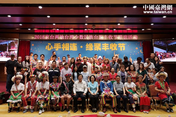 京臺兩地臺灣少數(shù)民族臺胞合影留念。(中國臺灣網(wǎng) 郜利敏 攝)