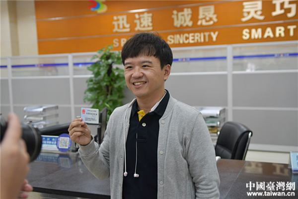中國臺灣網(wǎng)9月14日成都訊 9月13日,四川省成都市溫江區(qū)公安局辦證大廳,在成都工作了五年的臺胞羅天豪從現(xiàn)場工作人員接過港澳臺居民居住證,意味著四川發(fā)出了首張港澳臺居民居住證。據(jù)了解,其它港澳臺居住證也將陸續(xù)發(fā)放。