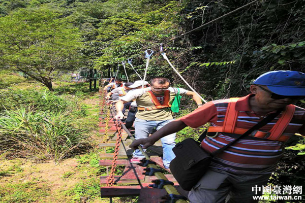 此次活動(dòng),所有參加人員來到了涇縣水墨汀溪,大家沿著溪流淌水向上走,一路翠林深深,領(lǐng)略了水墨山水般原生態(tài)綠色凈土,臺(tái)商臺(tái)胞們還體驗(yàn)了拓展項(xiàng)目,一行人一個(gè)接一個(gè)走上索道和板橋,一路驚險(xiǎn)有趣,在走走停停,說說笑笑中,不僅體驗(yàn)到林間穿越的刺激,更是加深了在宣臺(tái)胞對祖國山河的熱愛。