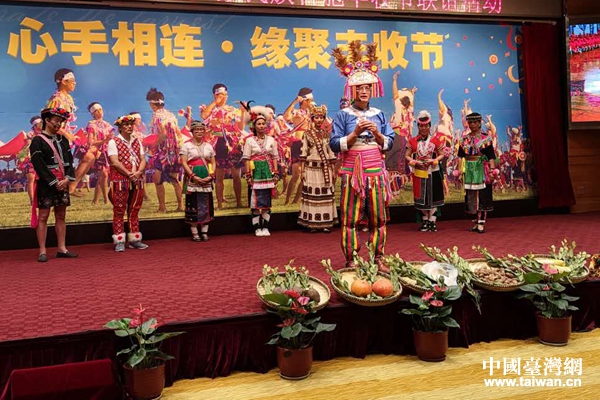 開幕式上,來自臺灣少數(shù)民族一行10余人通過“祈福典禮”、“解說豐年祭祀禮儀”、“京臺家人會舞聯(lián)歡”等形式,營造出臺灣少數(shù)民族臺胞喜迎豐年、緬懷祖先、載歌載舞的節(jié)日氛圍。
