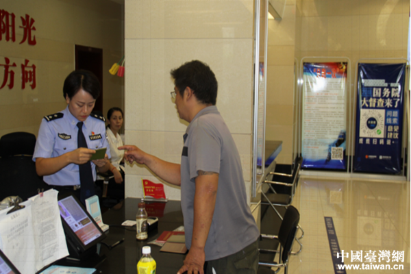 中國臺灣網9月18日攀枝花訊 國務院辦公廳印發的《港澳臺居民居住證申領發放辦法》于9月1日正式實施。近日,臺胞鐘任杰一早來到米易縣政務中心戶籍窗口,經過資料錄入、指紋采集、照片采集等環節,10余分鐘后鐘任杰拿到了居住證領取憑證。“這下好了,有了居住證,辦理銀行卡、申領駕駛證、網上購票就方便多了。”鐘任杰激動地說。