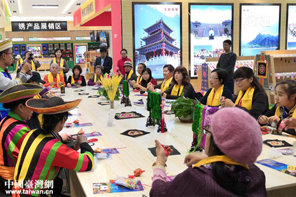 體驗(yàn)土族盤(pán)繡制作。(圖片來(lái)源:青海省臺(tái)辦)