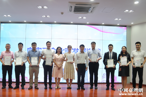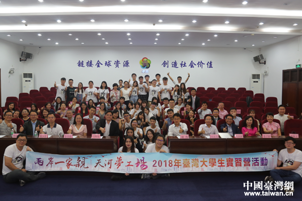 中國臺灣網(wǎng)9月18日廣州訊 近日,“兩岸一家親 天河夢工場”2018年臺灣大學(xué)生實習(xí)結(jié)業(yè)典禮在暨南大學(xué)舉行。廣州市臺辦副主任鄺偉斐,天河區(qū)委常委謝偉,天河區(qū)人大常委會副主任李笑娟,天河區(qū)臺辦主任袁曉文,暨南大學(xué)海外聯(lián)誼會秘書長莊漢文,廣州市臺資企業(yè)協(xié)會會長王慶祥,廣州市臺資企業(yè)協(xié)會天河分會會長翁子婷,中華醫(yī)事科技大學(xué)副校長楊堉麟以及區(qū)相關(guān)單位負(fù)責(zé)人、實習(xí)企業(yè)代表、臺灣學(xué)生等近百人出席結(jié)業(yè)典禮。