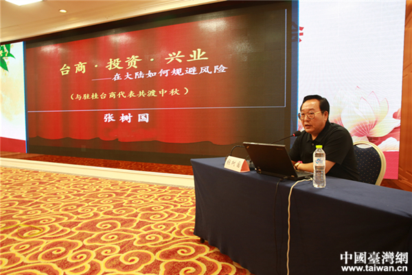 自治區(qū)臺(tái)辦法律顧問張樹國(guó)在“臺(tái)商在大陸投資興業(yè)如何規(guī)避風(fēng)險(xiǎn)”主題法律講座中,從兩岸同宗同源、桂臺(tái)兩地經(jīng)貿(mào)投資成果、大陸為服務(wù)臺(tái)商而搭建的立體服務(wù)平臺(tái)以及生活、投資與置業(yè)存在風(fēng)險(xiǎn)5個(gè)方面,提出了臺(tái)商在桂投資規(guī)避風(fēng)險(xiǎn)的方法和建議。