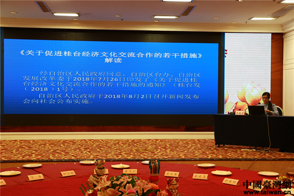 《關(guān)于促進(jìn)桂臺(tái)經(jīng)濟(jì)文化交流合作的若干措施》解讀。(圖片來源:廣西臺(tái)辦)