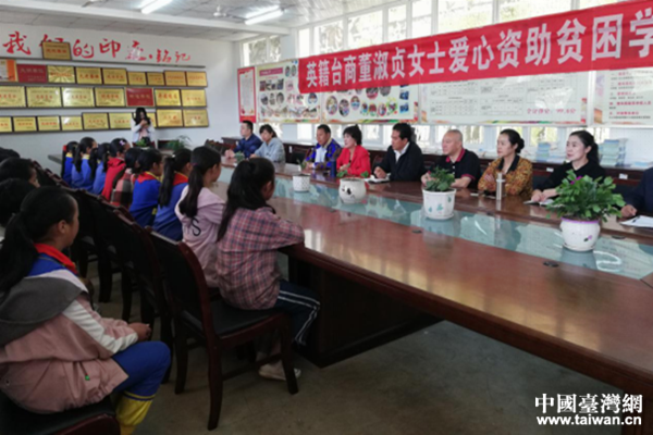 董淑貞女士愛心資助大涼山貧困學(xué)子。(圖片來源:四川省臺聯(lián))