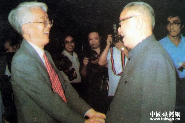 李先念(右)1988年9月13日在京會見胡秋原。(圖片來源:武漢市臺辦)